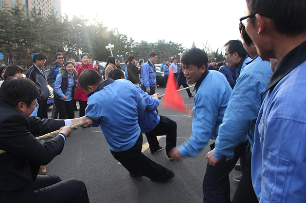 热烈祝贺威高房地产集团首届拔河比赛圆满结束,经过激烈的PK,物业公司一队力拔头筹,商管、万通一队勇夺亚军,建设公司一队获得季军。本次比赛得到了各子公司的积极响应和热情参与,赛前各队伍信心满满,整装待发,比赛过程中,各队队员齐心协力,荣辱与共。今天的比赛天气虽然寒冷,但各队队员都克服困难,奋勇争先,发扬团队作风,展现了威高地产人的团结协作,永争第一的精神。