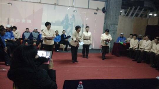 节目开始前,主持人:华素娟、江德舫、李玉兰,向在场所有员工诉说“2013年的今天”,一年前的今天我们进驻威高广场项目,人说“创业艰辛”其实“创项目”更加艰难,整整一年了,威高广场项目从起初最先入场的于春蓉、房海君、于志娜、李立波、张丽君等20多名员工拓展到今日的百名员工,背后的辛酸、苦累历历在目。