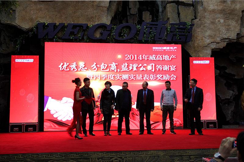 参观结束后威高地产在初村威高生态园举行了优秀总、分包商及监理公司答谢晚宴,并由威高地产运营总监江学文发表了主题为“风雨同舟,继往开来”的演讲,感谢一年来合作企业对威高地产的支持,同时也展望了未来房地产行业的发展前景及威高地产的发展方向,同时公布了第四季度威高地产各项目工程实测实量结果,并向优秀总、分包上颁发获奖证书及流动红旗。各总、分包商及监理公司也纷纷表示在未来将感知自身责任,顺应威高地产的发展要求,实现与威高地产的合作共赢,共同发展!