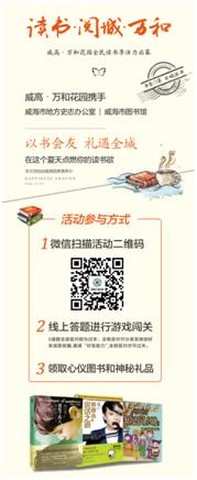 本次公益送书活动,由威高•万和花园携手威海市地方史志办公室以及威海市图书馆举办,并由威海信息港承办,旨在推动城市文化建设,传递多读书、读好书的正能量,通过免费送书的实际行动,呼吁大家回归书籍,陶冶情操。