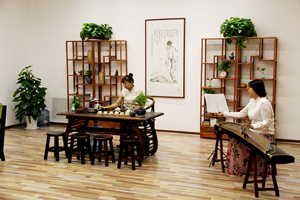 来到业主文化会馆内,细心的工作人员已经为嘉宾们准备好了精致的点心与可口的饮料,热情周到的服务获得了在场嘉宾的一致肯定。会馆内更是热闹非凡,活动可谓精彩缤纷。健康中心的工作人员正在给业主测量血压,并将为他们建立健康档案,成为业主们“家门口的健康管家”;茶室里飘出了琵琶悠扬的音律,走进去,茶的幽香弥漫整个茶室,三两好友正饮茶叙谈,这里不仅是一处饮茶之所,更成为业主一个精神休憩地;乒乓球室的业主们酣畅淋漓地打着兵乓球,亲民的运动受到了众业主的追捧与肯定;阅览室里的小朋友们正在吹画,他们拿着吸管对着颜料轻轻地吹,让颜料自然散开、自由融合,创作出不可思议的美好;瑜伽室吸引了众多爱美的女士前来锻炼,会馆也特地邀请了专业的瑜伽老师对业主进行指导,让大家更好地锻炼出婀娜的体态与优雅的气质;至于棋牌室,则吸引了众多老年朋友前来参与,大家通过打牌、下棋来促进交流,增进感情。