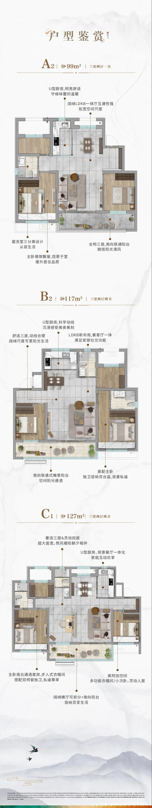约3米礼制层高,塑造建面约99/117/127㎡的优雅空间,满足小太阳家庭、二胎之家、四世同堂等家庭结构;近10%超大赠送,高附加、高得房率,体感空间远远优于同面积户型,LDKB泛会客厅、可拆分灵动横厅,成就流行审美和空间想象。