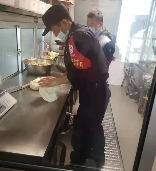 李伟是锦和花园的秩序维护班长,自3月8日得到公司疫情管控通知后,他便返岗坚守在抗疫一线,他主要负责秩序维护岗人员安排、协助社区和临港区业主核酸检测现场秩序维护等。随着抗疫战线拉长,坚守在岗的员工吃饭问题亟待解决,经公司领导部门协调安排,将锦和花园业主食堂的厨房提供给在岗一线职工使用,由于燃气设备和日常家庭不一样,为避免发生安全事故,他主动承担起项目在岗18个人日常的就餐。突如其来的封控让园区里的外国友人不知如何是好,找不到核酸检测地点他便主动与其沟通后开车接送;由于临港燕喜堂不提供送药服务,他每次都主动承担给业主买药、微信沟通等工作,确保购买药品是业主所需;日常消杀由于新设备重,噪音大,考虑保洁人员年纪大,他还主动承担园区的大范围消杀工作……