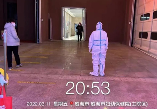 张翠晓是威海市妇幼保健院保洁班长,3月10日凌晨1点,应院方紧急通知,需加强消杀频次,加班值守,落实防疫工作部署,她与保洁主管王馨、员工段淑芬、苑秀香轮流替岗,执行两部电梯的运营和消毒工作,彻夜未眠直至早7点各岗位人员正常上班。疫情期间,为了解决大家吃住问题,她主动与院方沟通,争取被品,并让家属将家中的被品、床垫、牙膏等物品送来大家一起使用。对于院方临时抽调来的替岗员工,贴心告知注意事项并及时开展个人防护安全方法培训,保证每天上岗前做好检查工作。医院静止期间,每天负责为隔离人员和患者运送物资,几乎每天都要忙到晚上八九点,之后还要检查当天各岗的消毒记录并汇总数据上报院方。