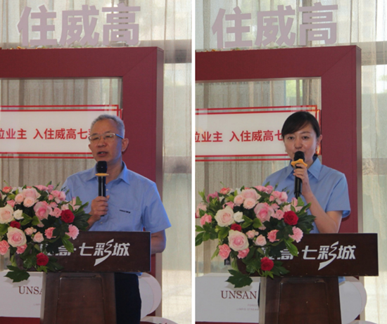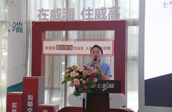 房地产总公司副总经理江学文做《精益求精 做幸福生活质造者》的主题分享,以威高·七彩城项目为案例,分享了房地产总公司的产品理念、设计理念及项目规划特色等。房地产总公司营销总监周丽娟做《营销铁军 做幸福生活传播者》的主题分享,分享了营销团队的铁军文化和创新营销理念。