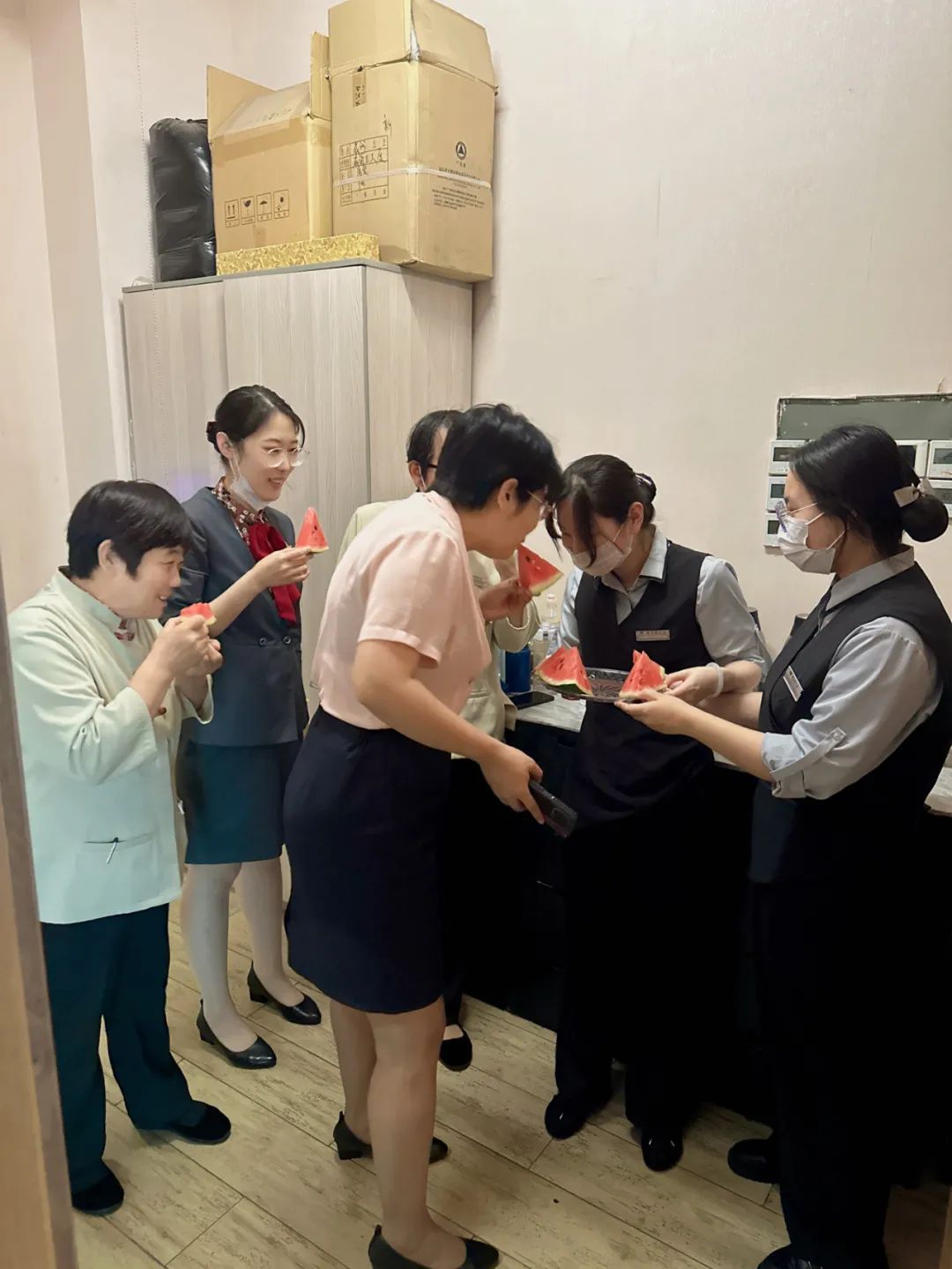 在活动现场,员工们纷纷表示 “这个夏天实在太热了,但是我们大厦工会的送清凉活动真的让我感到无比温暖。西瓜解渴,毛巾擦汗,简直是太贴心了!”“酒店工会一直都非常关心我们的生活和工作,这次送清凉活动更加坚定了我对酒店家庭的归属感。”