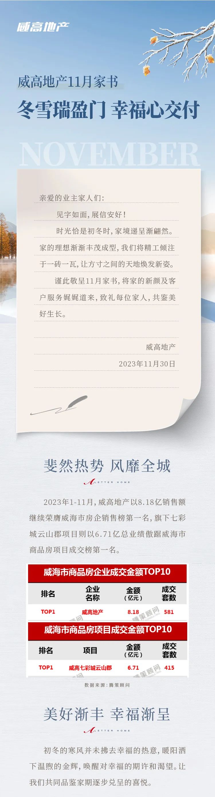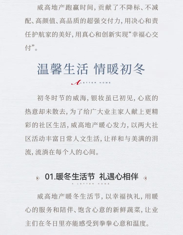 1.本推广中七彩城,核准地名为润和花园;锦绣四海,核准地名:威高锦绣四海;威高新城仁和苑,核准地名:威高西路-11;威高花园WE公馆,核准地名:威高花园-8,推广名为商品房楼号、房号由政府有关部门初步确定,项目最终名称及商品房楼号、房号以政府相关文件确认为准;2.本资料相关内容及图片是对项目所做的示意表现,仅供参考,最终以政府有关部门批准的文件和图则为准,经政府批准的详细规划已在销售现场公示,敬请查看。后续因规划及设计方案调整导致信息变化的内容,我司将按照政府要求公示;3.本宣传资料仅为要约邀请,不作为邀约承诺买卖双方的权利义务以双方签订的《商品房买卖合同》及附件等协议为准;4.本广告相关面积段为预估建筑面积,仅供参考,因楼栋、楼层、单元等差别相同户型的局部布局、面积等同,详情以双方签订的《商品房买卖合同》及附件等协议为准;5.开发商:乐竞官网;6.预售证号:(威)房预售证第2020133号预售证号:(威)房预售证第20220027号(威)房预售证第 20210330号 (威)房预售证第 20210331号 (威)房预售证第 20210332号;7.本广告2023年12月1日启用,相关内容如有更新,请以最新资料内容为准。