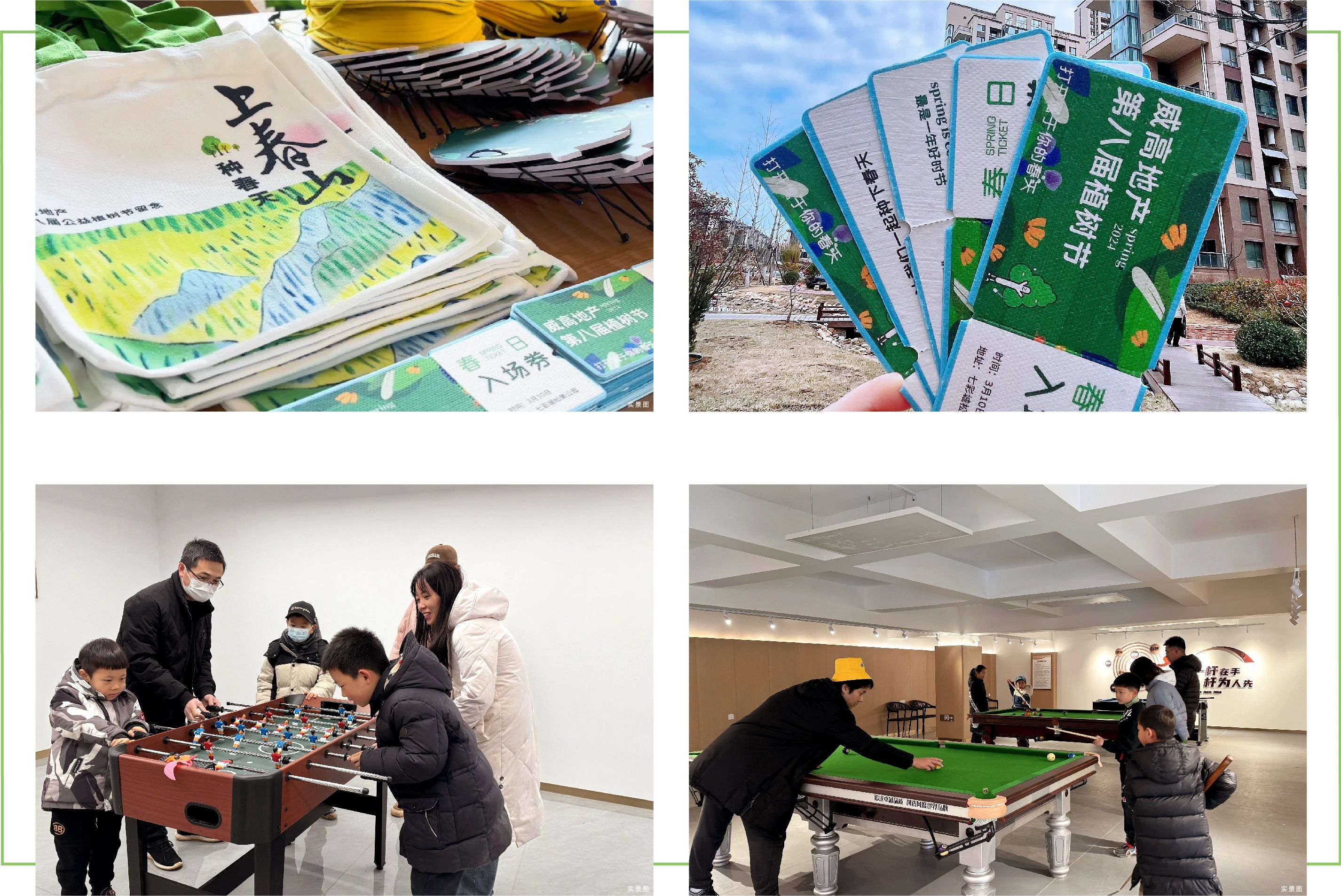 本次活动以“上春山,种春天”为主题,亮点颇多:一是为每组家庭准备了“春天心愿袋”,用可重复利用的文创帆布袋、可种植的种子门票来激发大家热爱公益的意识;二是全流程的服务链,每个家庭还在活动中体验了社区会所的斯诺克、桌游等休闲项目,在快乐植树的同时,更能体验到威高地产的优质服务。