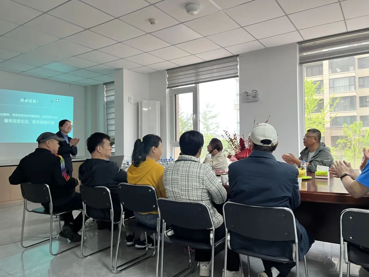 社区内还安装了智慧中控大屏和配备了社区便民服务站,更好的守护和服务家人们的美好生活。除此之外威高物业会定期进行服务培训,不断的提升专业服务水平,以更标准的服务,让业主们享受山海大城的幸福生活。