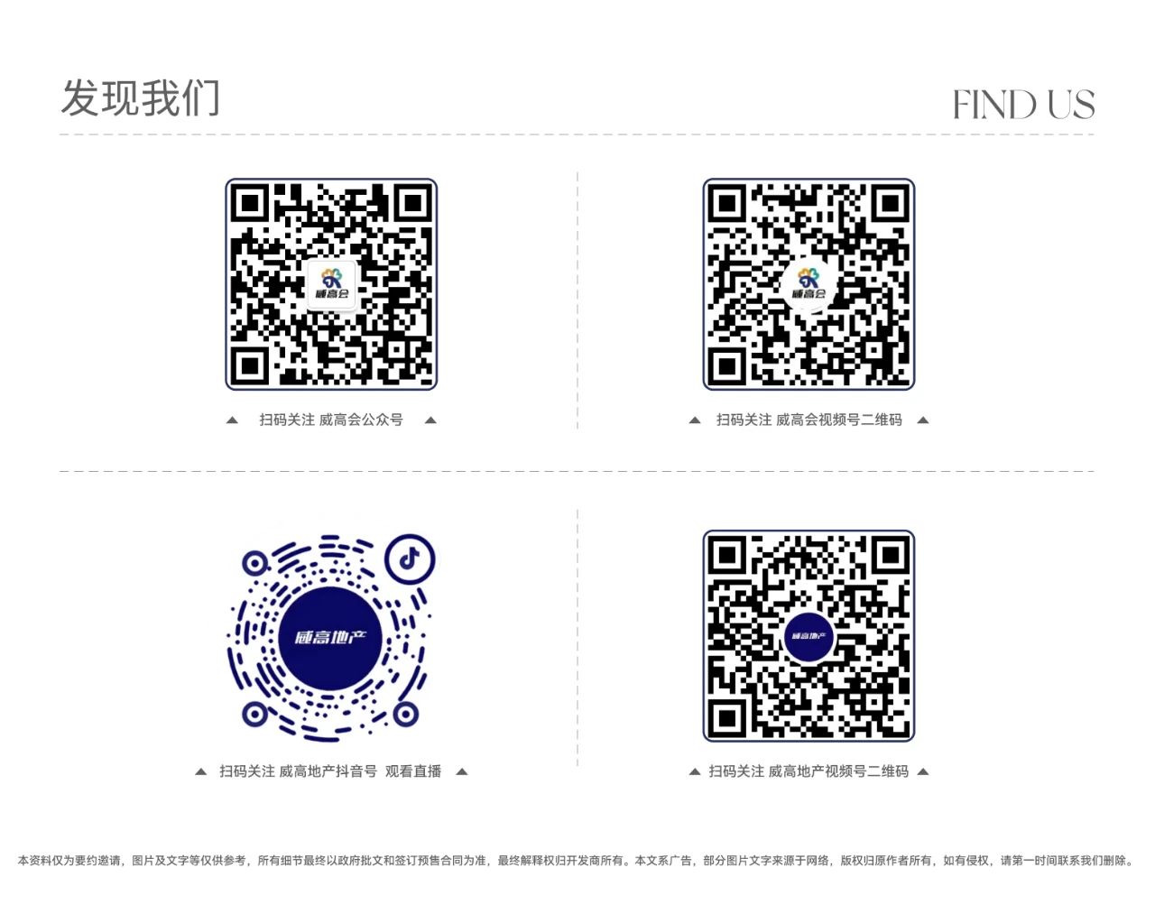 1.本推广中七彩城,核准地名为润和花园;锦绣四海,核准地名:威高锦绣四海;威高新城仁和苑,核准地名:威高西路-11;威高花园WE公馆,核准地名:威高花园-8,推广名为商品房楼号、房号由政府有关部门初步确定,项目最终名称及商品房楼号、房号以政府相关文件确认为准;2.本资料相关内容及图片是对项目所做的示意表现,仅供参考,最终以政府有关部门批准的文件和图则为准,经政府批准的详细规划已在销售现场公示,敬请查看。后续因规划及设计方案调整导致信息变化的内容,我司将按照政府要求公示;3.本宣传资料仅为要约邀请,不作为邀约承诺买卖双方的权利义务以双方签订的《商品房买卖合同》及附件等协议为准;4.本广告相关面积段为预估建筑面积,仅供参考,因楼栋、楼层、单元等差别相同户型的局部布局、面积等同,详情以双方签订的《商品房买卖合同》及附件等协议为准;5.开发商:乐竞官网;6.预售证号:(威)房预售证第2020133号预售证号:(威)房预售证第20220027号(威)房预售证第 20210330号 (威)房预售证第 20210331号 (威)房预售证第 20210332号;7.本广告2024年9月启用,相关内容如有更新,请以最新资料内容为准。