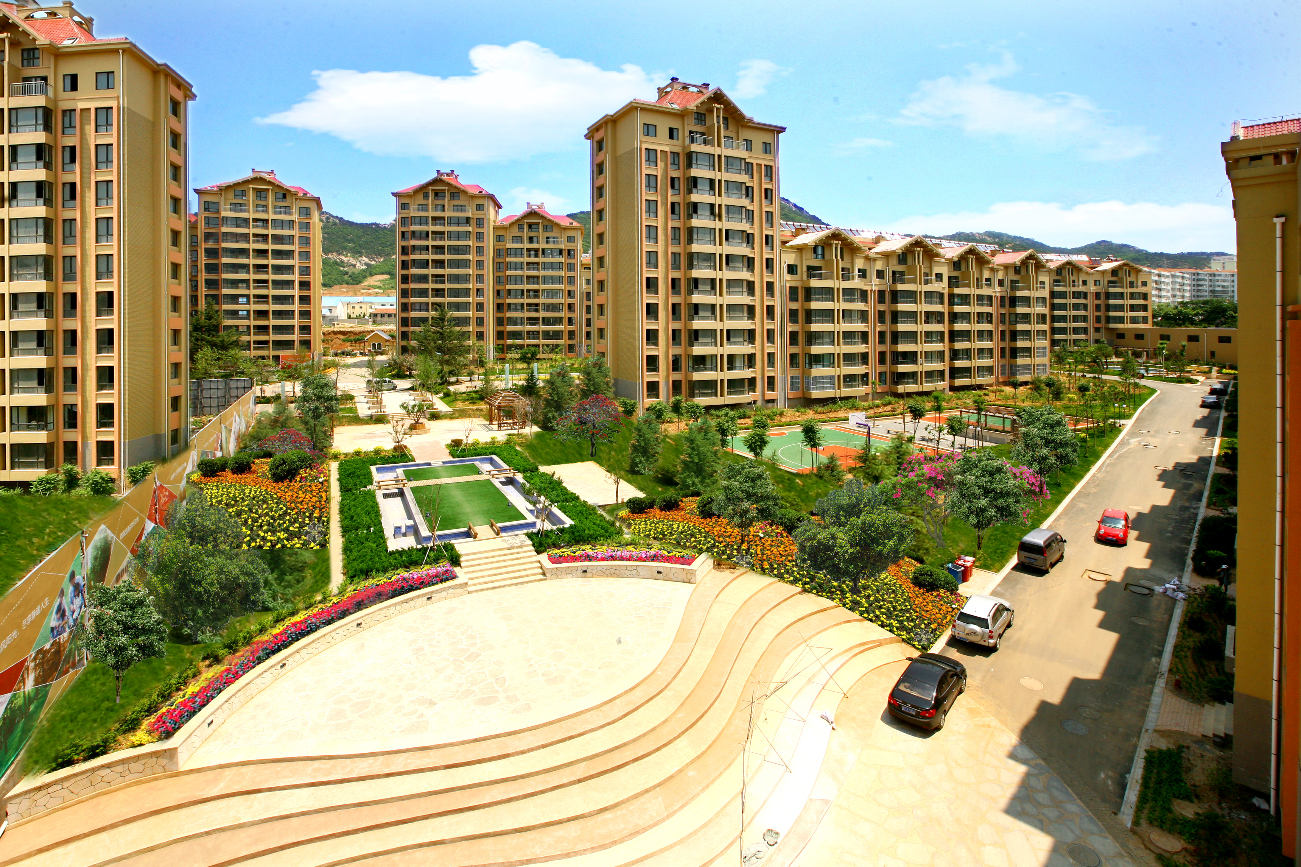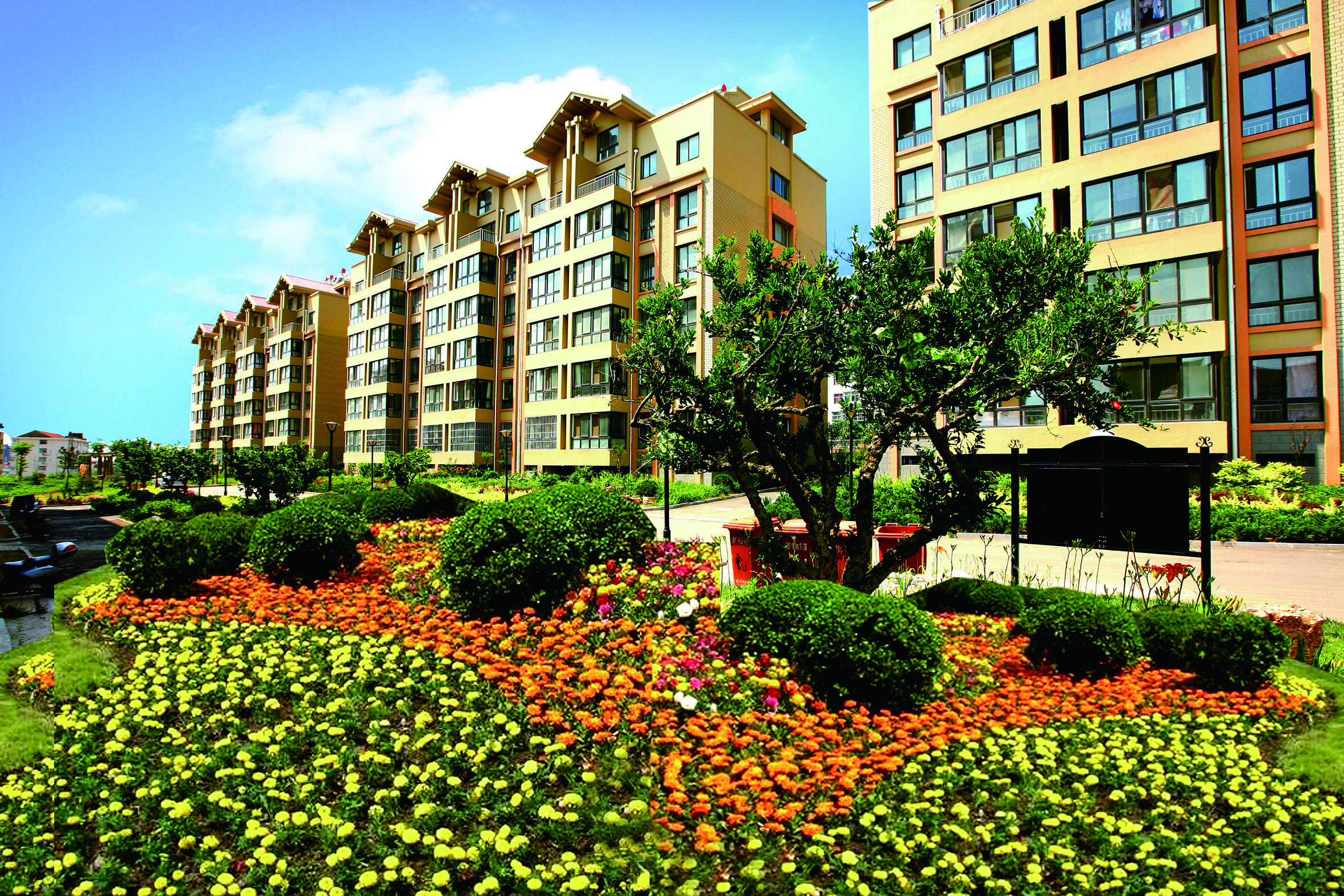 社区中心的0.25公顷生态绿化公园与建筑同生共长,结合整个绿化系统而设的绿化散步道自由活泼、曲径通幽,将小区内多块绿化连为一体,为居民提供安全舒适的活动空间。漫步其中,庭院空间相互呼应,立体造型新颖别致。浓荫的绿化气氛、温暖的色彩、宽大的阳台、清新的自然气息,社区内每一个角落都洋溢着温馨浪漫的艺术格调。